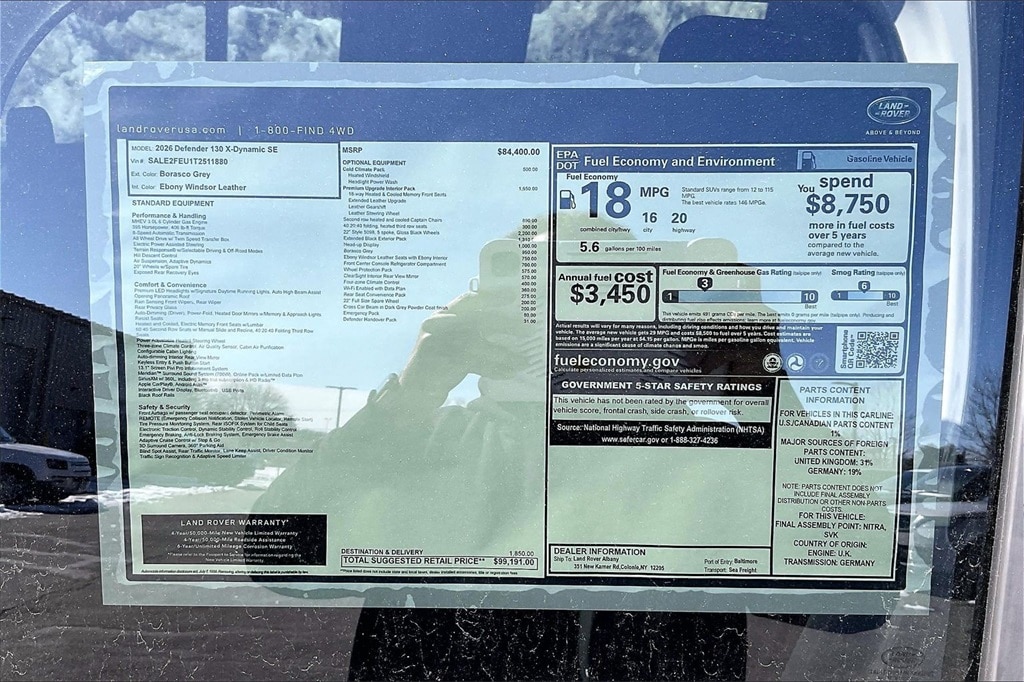 Land Rover Albany is proud to present this New 2026 Land Rover Defender 130 X-Dynamic SE 6-Cylinder. This vehicle features: